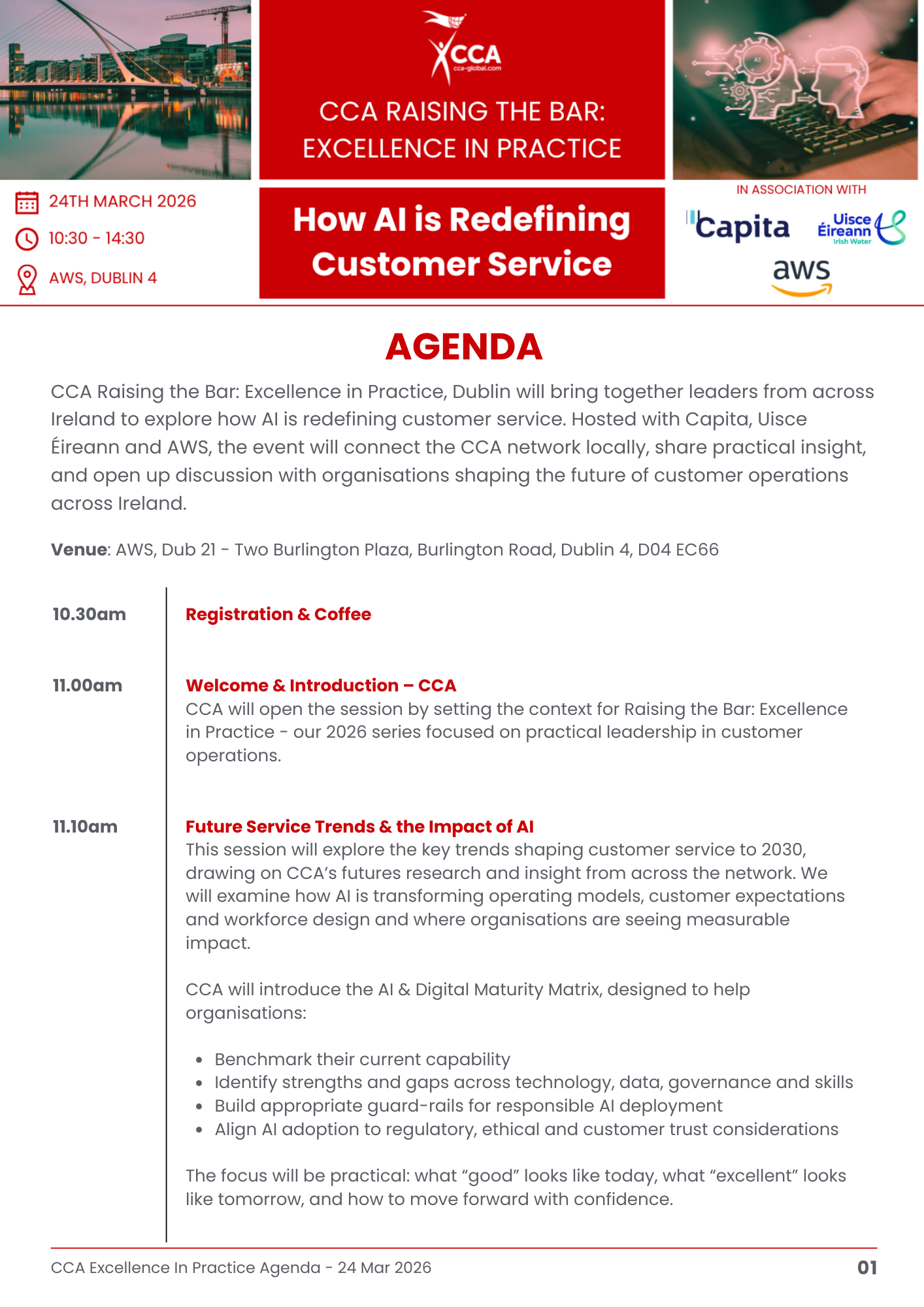 CCA Raising the Bar: Excellence in Practice launches in Dublin on 24 March, bringing together leaders from across Ireland to explore how AI is redefining customer service. Hosted with Capita, Uisce Éireann and AWS, the event will connect the CCA network locally, share practical insight, and open up discussion with organisations shaping the future of customer operations across Ireland.